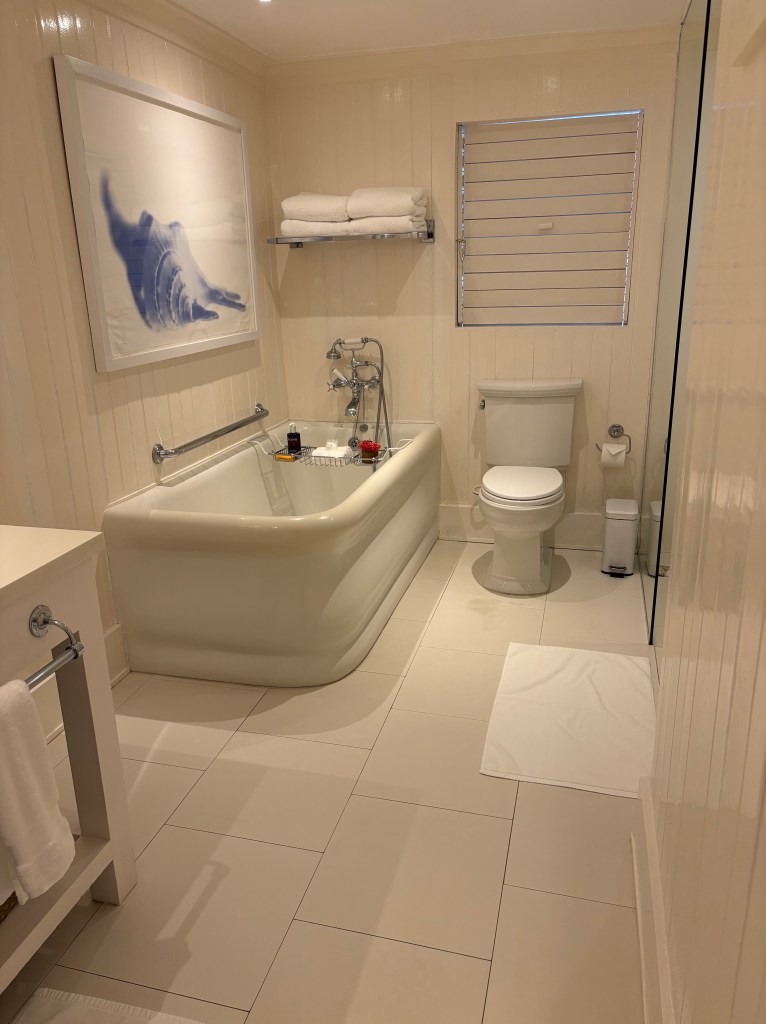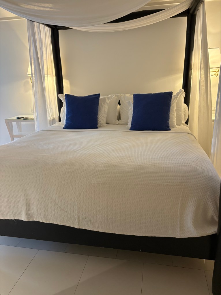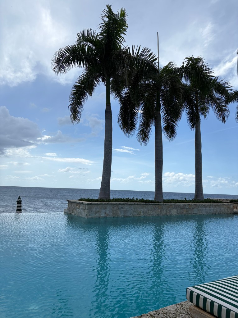 This past year, we finally made it to Round Hill! This 70+ year old hotel, which recently earned a Michelin key, had been on our bucket list for a while. It’s another one of the island’s most highly rated and most high-end, and it has won numerous awards, including a 2024 “Best of the Best” from TripAdvisor. We could definitely see why. Grounds were beautiful, staff were lovely, food was outstanding, and it felt very luxurious (the price reflects that). When you get bored of the beach, head to the infinity pool, see pic below. There’s a manager’s cocktail hour weekly which we were lucky enough to be there for; it was a great way to sample some cocktails, eat some tasty hors d’oeuvres, and chat with others. We saw some celebrities while we were there, and could definitely see why it would be a place the rich and famous would frequent. Just note, we stayed in the main hotel, not one of the villas, so can only imagine (and dream!) about what that experience is like considering how nice our room was.