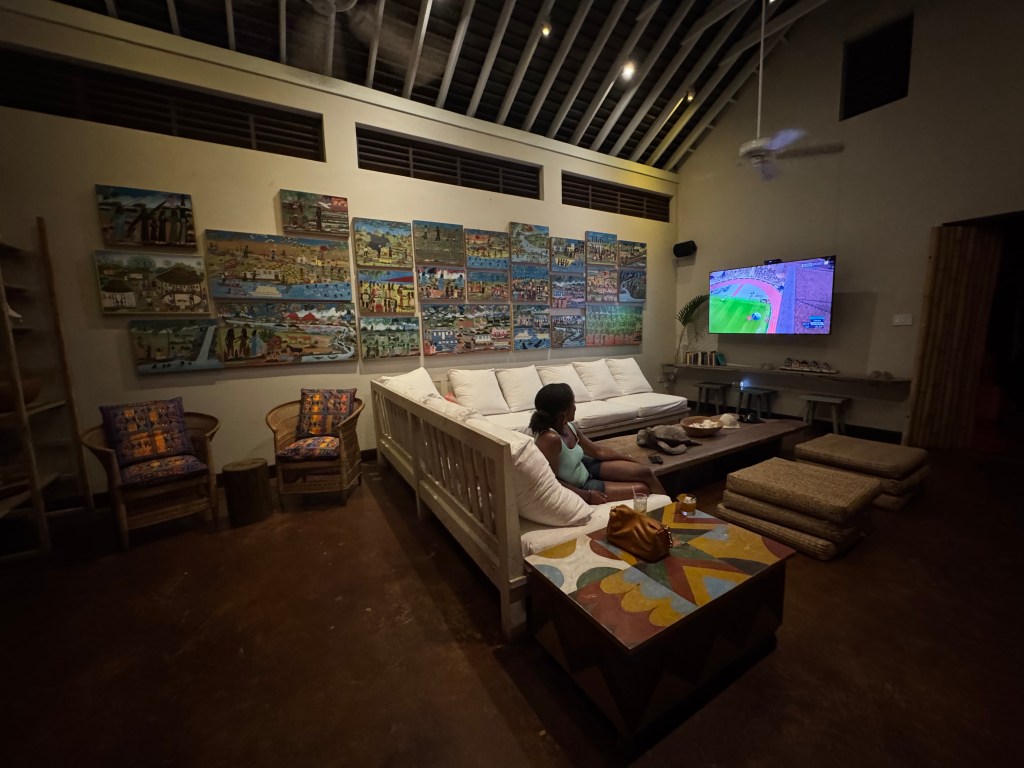 While staying at Goldeneye, although it may be tempting to just stick to your hut/villa/cottage, do take the time to go to the bar, Shabeen, even if you don’t drink. The bartenders are entertaining, funny, and have stories for days. Also, they will offer you what might just be the world’s best popcorn and it seems to be unlimited. Shabeen is also situated in a perfect spot on the grounds to catch the sunset. Right beside the bar is a setup where you can watch television and with lots of art and books to take in – it feels very much like your own Jamaican living room.